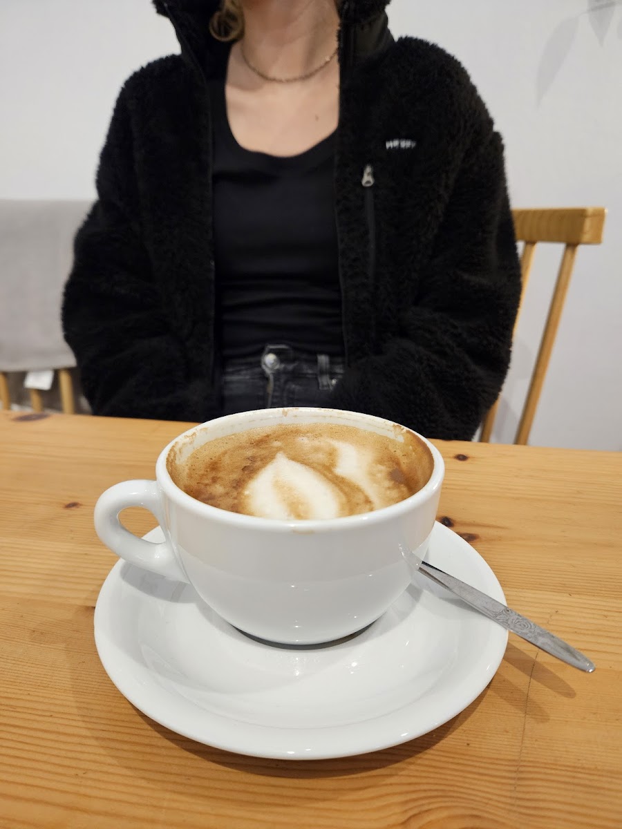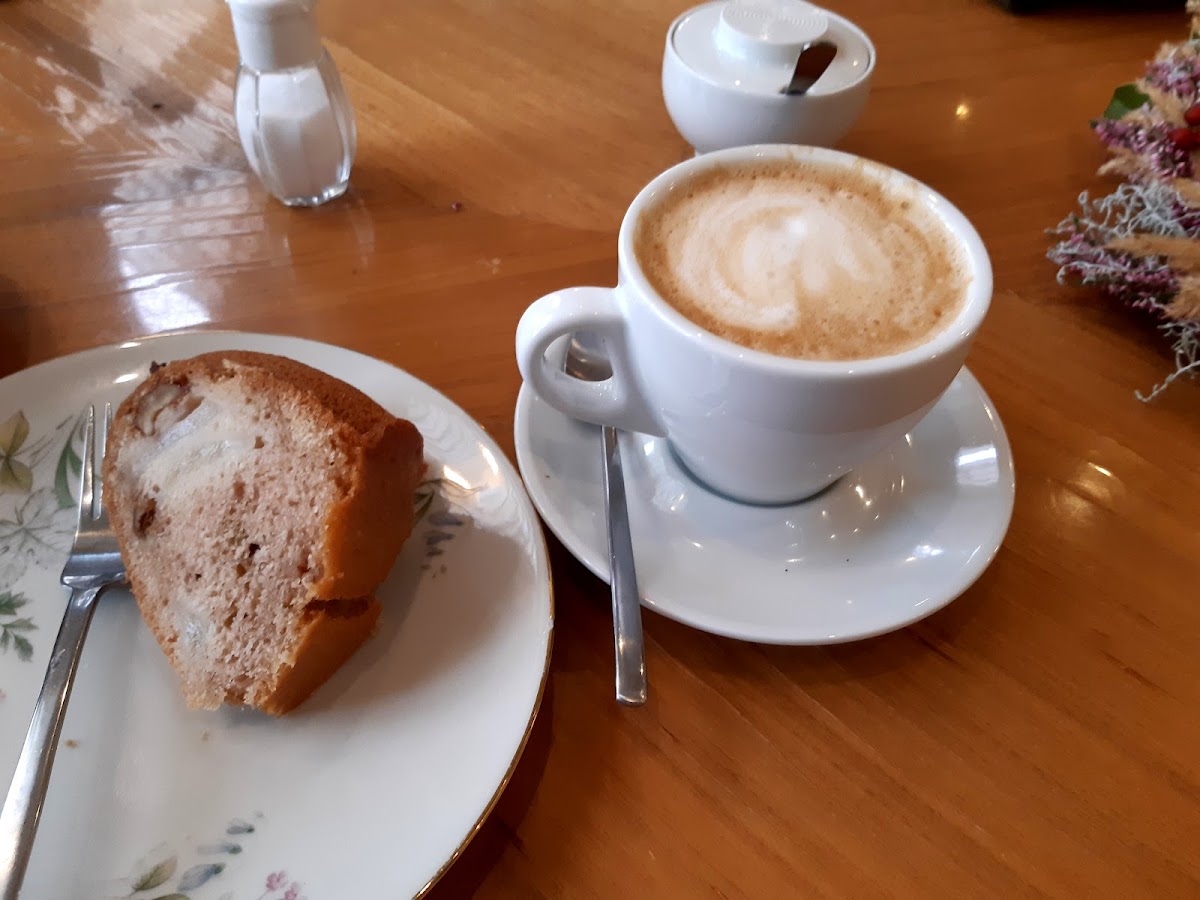 The café’s charm lies in its straightforward, lived-in atmosphere—comfortable seating both inside and outside where locals often linger, especially when the winter sun makes outdoor glühwein and coffee all the more enjoyable. It’s the kind of spot that naturally attracts a mix of people: from early risers grabbing a thoughtfully crafted cappuccino to groups celebrating special moments over breakfast or cake.