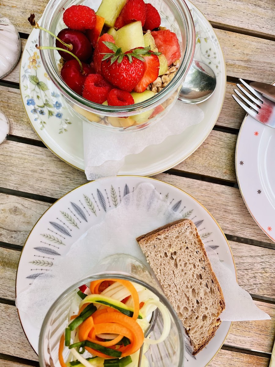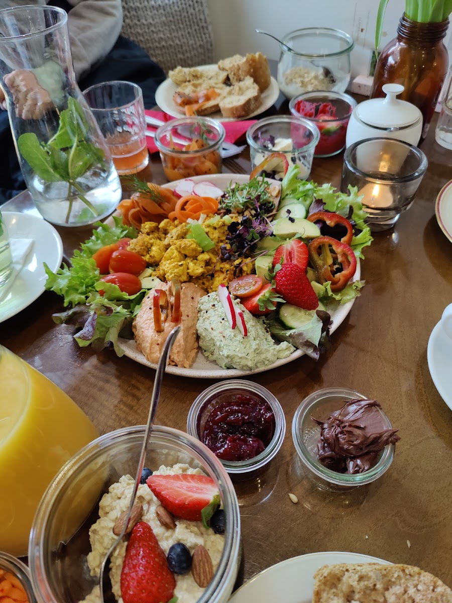 The menu highlights home-style touches, with attention to both traditional and vegan options. Patrons often remark on the housemade cakes like their Käsekuchen and seasonal Birnen-Walnusskuchen, which appear alongside other sweets like waffles served with ice cream. These offerings are not just treats but part of the everyday rhythm here—frequent visitors comment on the fresh, beautifully presented breakfast dishes that keep them coming back on weekends throughout summer and beyond.